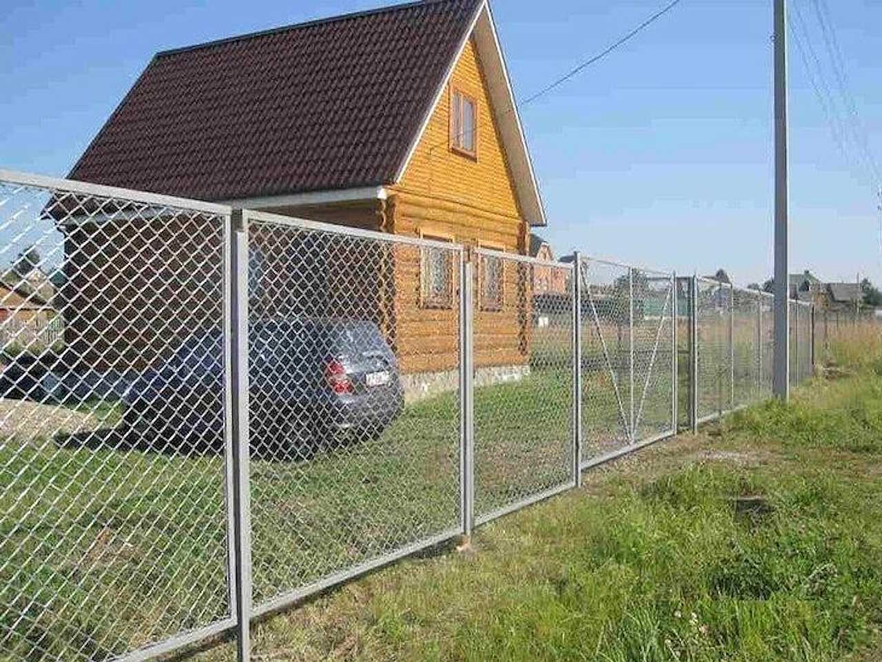 Заборы из сетки рабица в секциях из профиля 8 соток